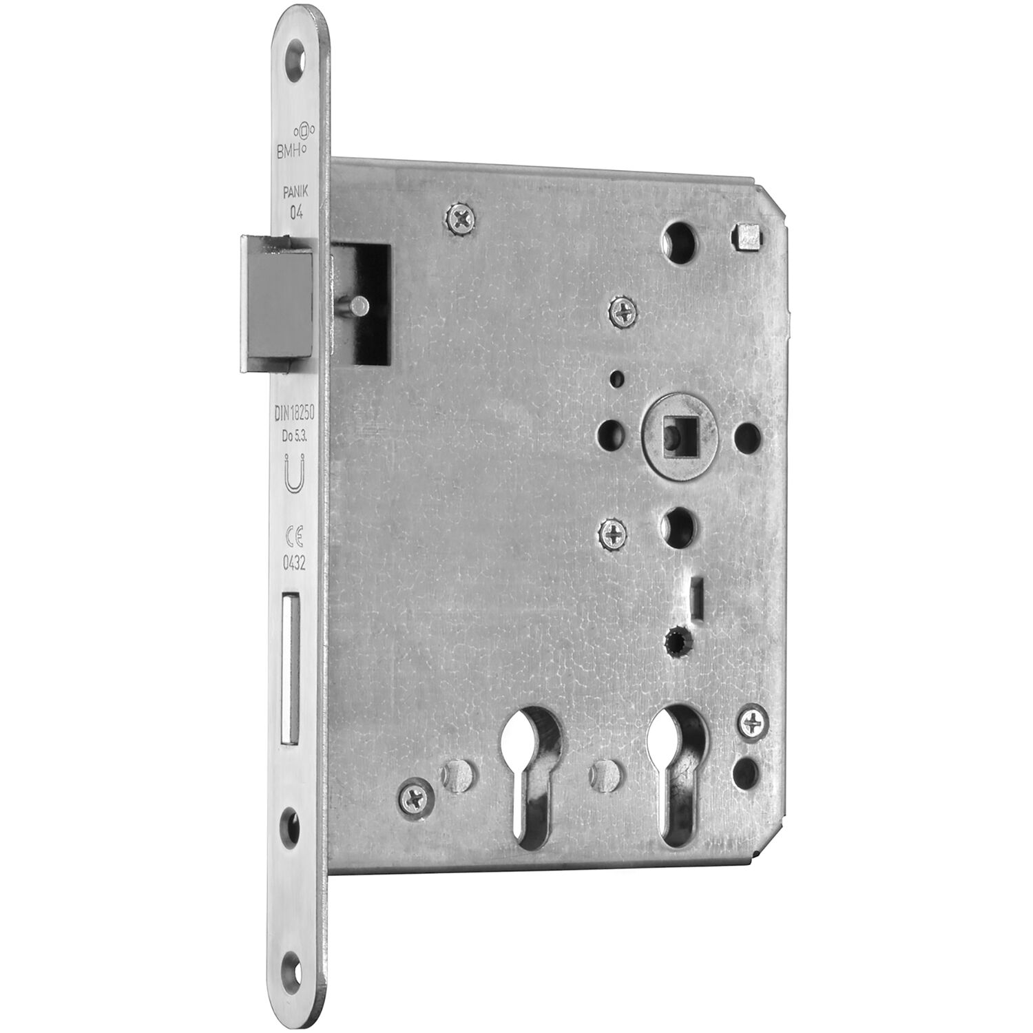 BMH Fluchttürschloss 1019 PZ für 2 Profilzylinder, rechts, DM 60/100, Edelstahl