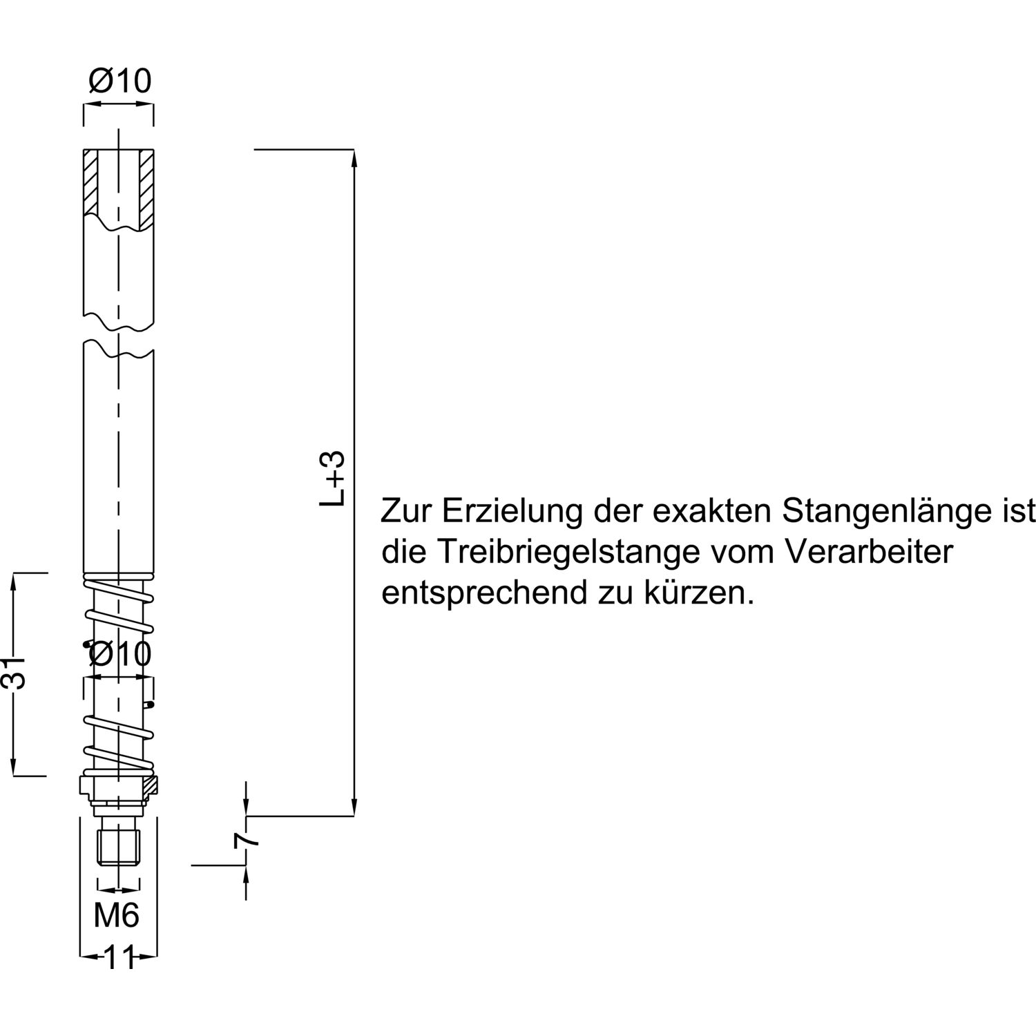BMH Treibriegelstange 1109, 1000 mm, mit Feder für unten u. oben, Stahl verzinkt