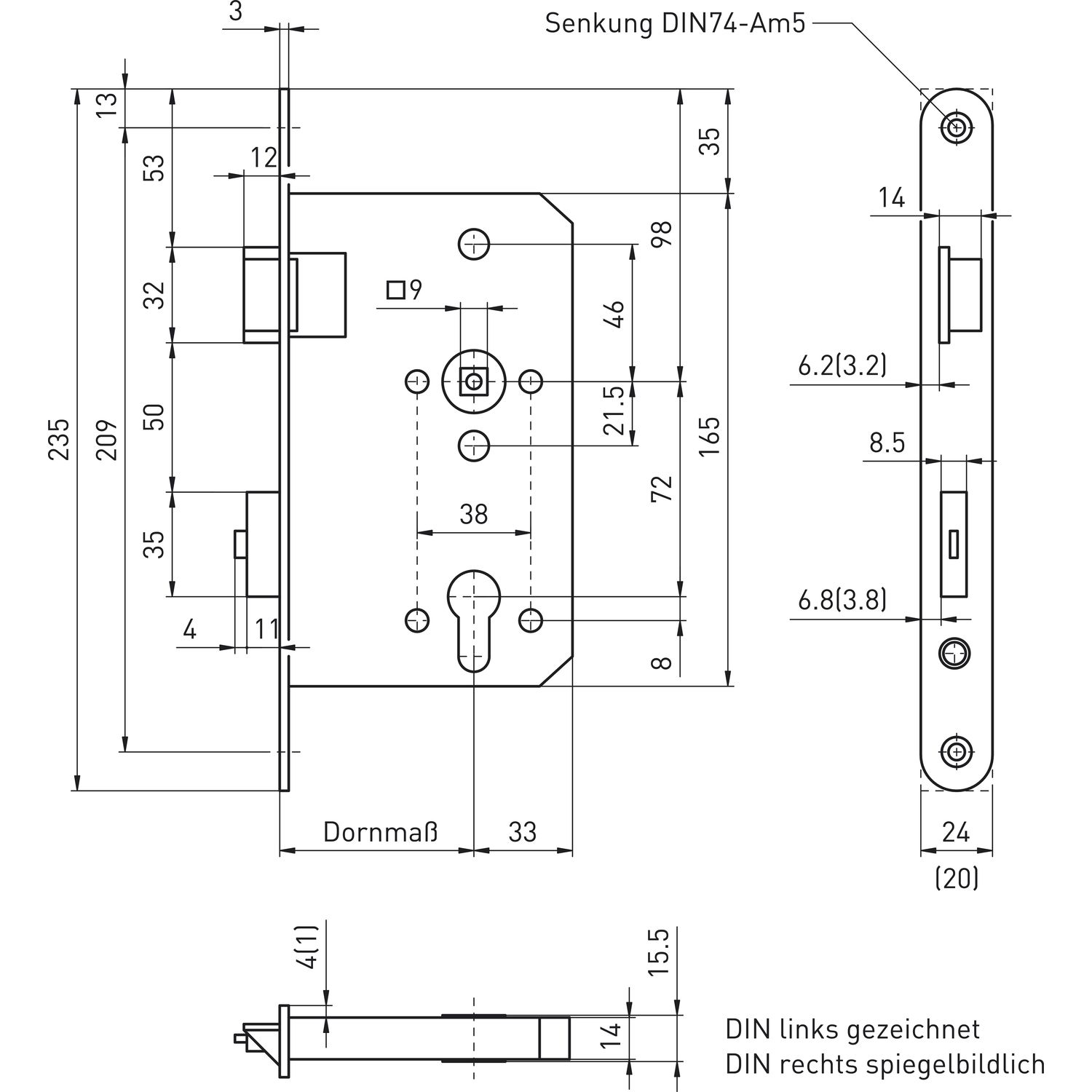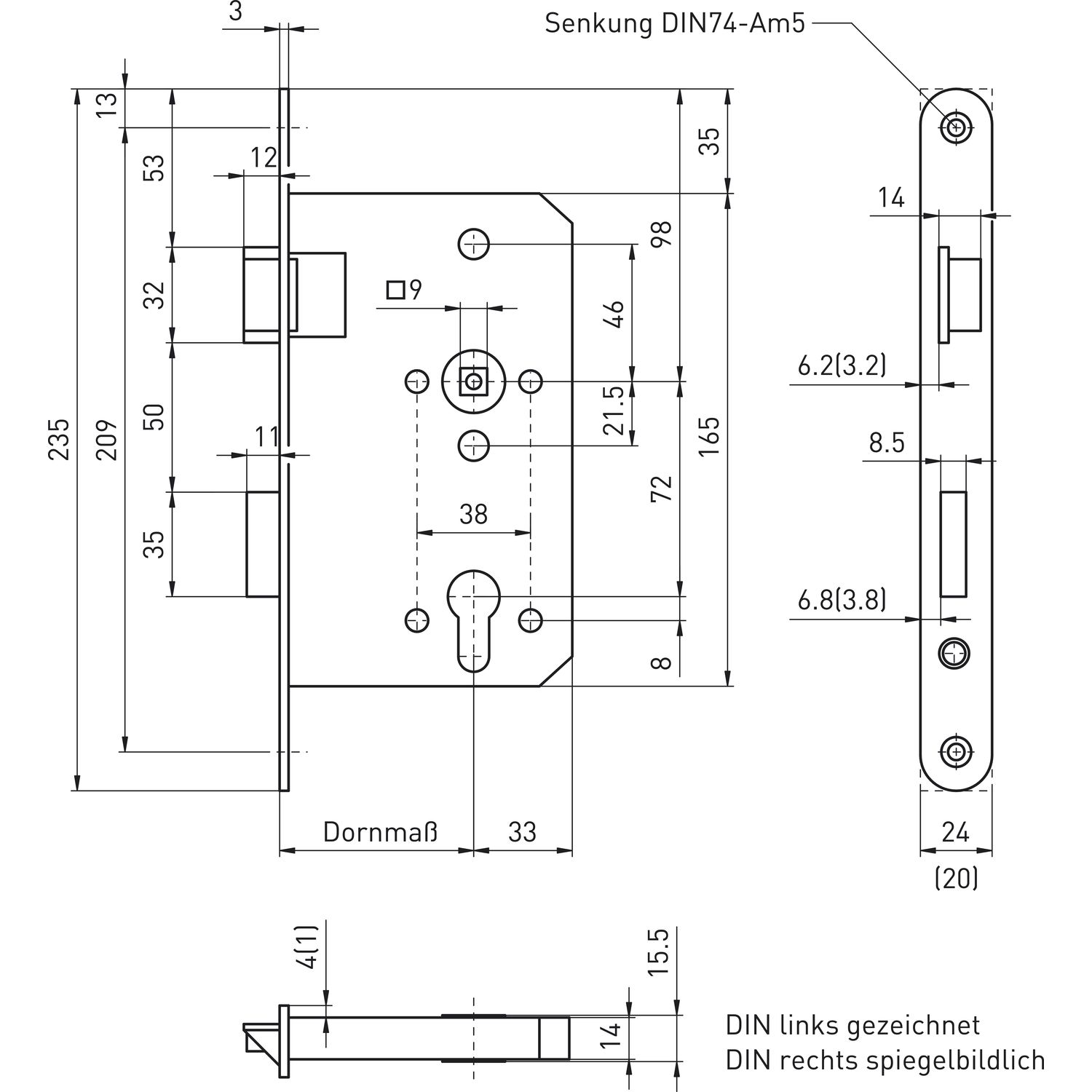 BMH Fluchttürschloss 6013 1-flg. Funktion E/EN 1125, rechts, Edelstahl Stulp 24