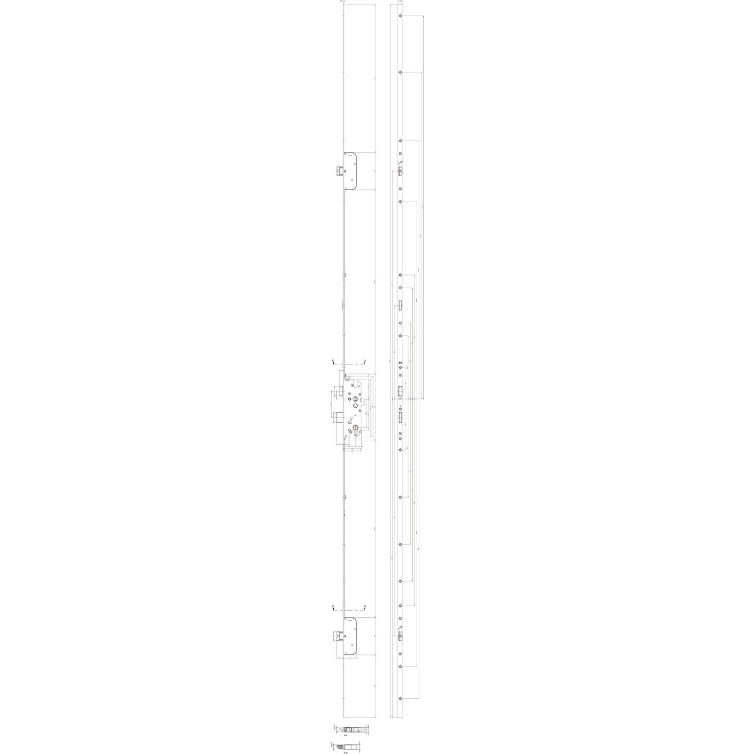 Falttortreibriegel, Hub 45, 240 x 70 x 24 mm, rechts, verzinkt