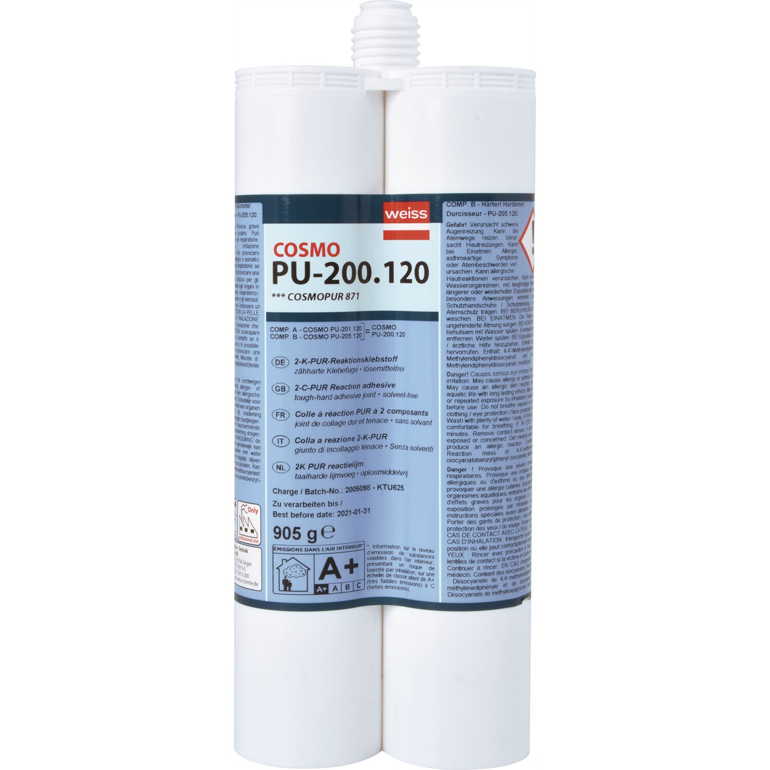 COSMO PU-200.120 2-K-PUR-Reaktionsklebstoff, 2x 310ml 880g perlweiß