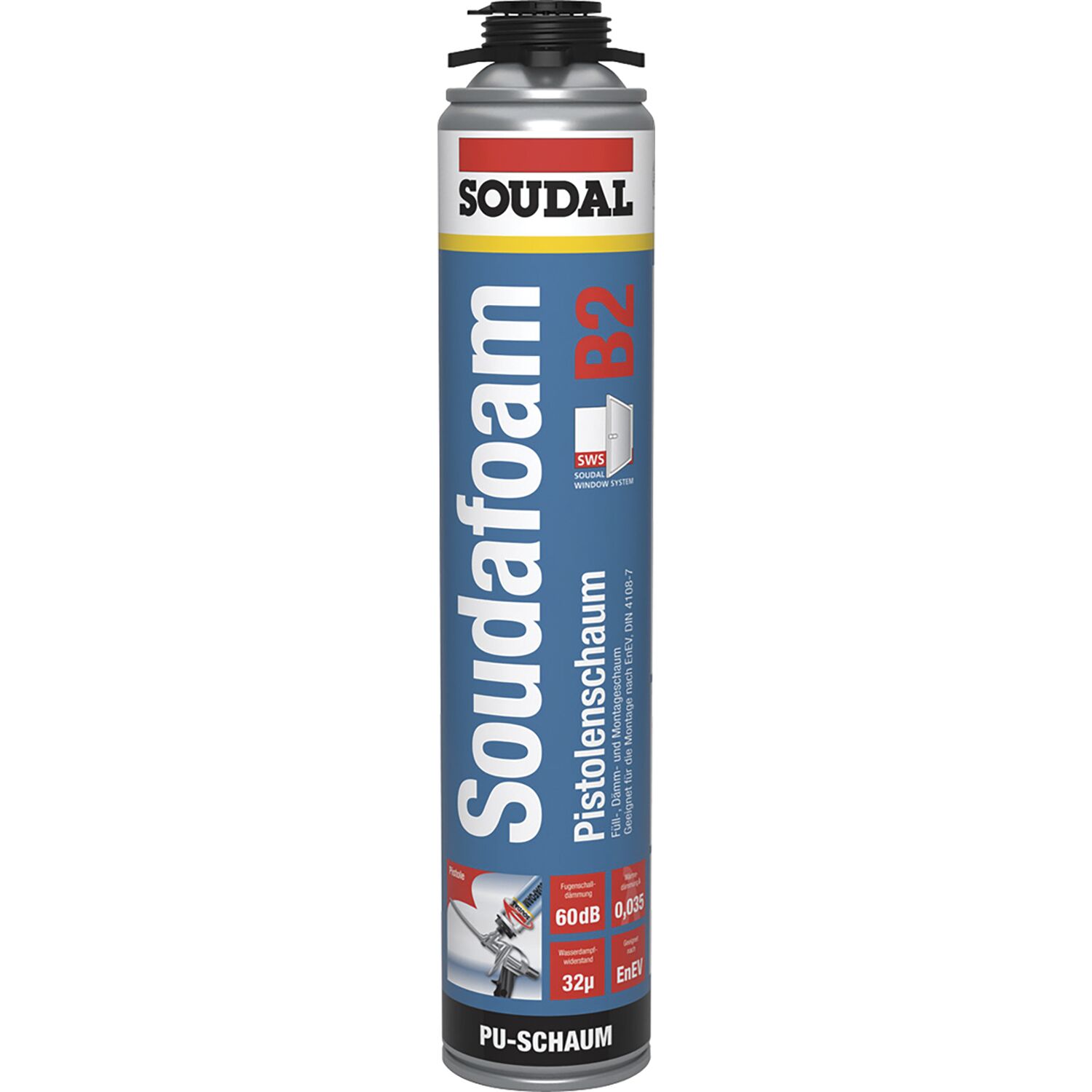 Soudal 1K - Pistolenschaum Soudafoam GUN B1 750ml mit PDR, - 45L Ausbeute