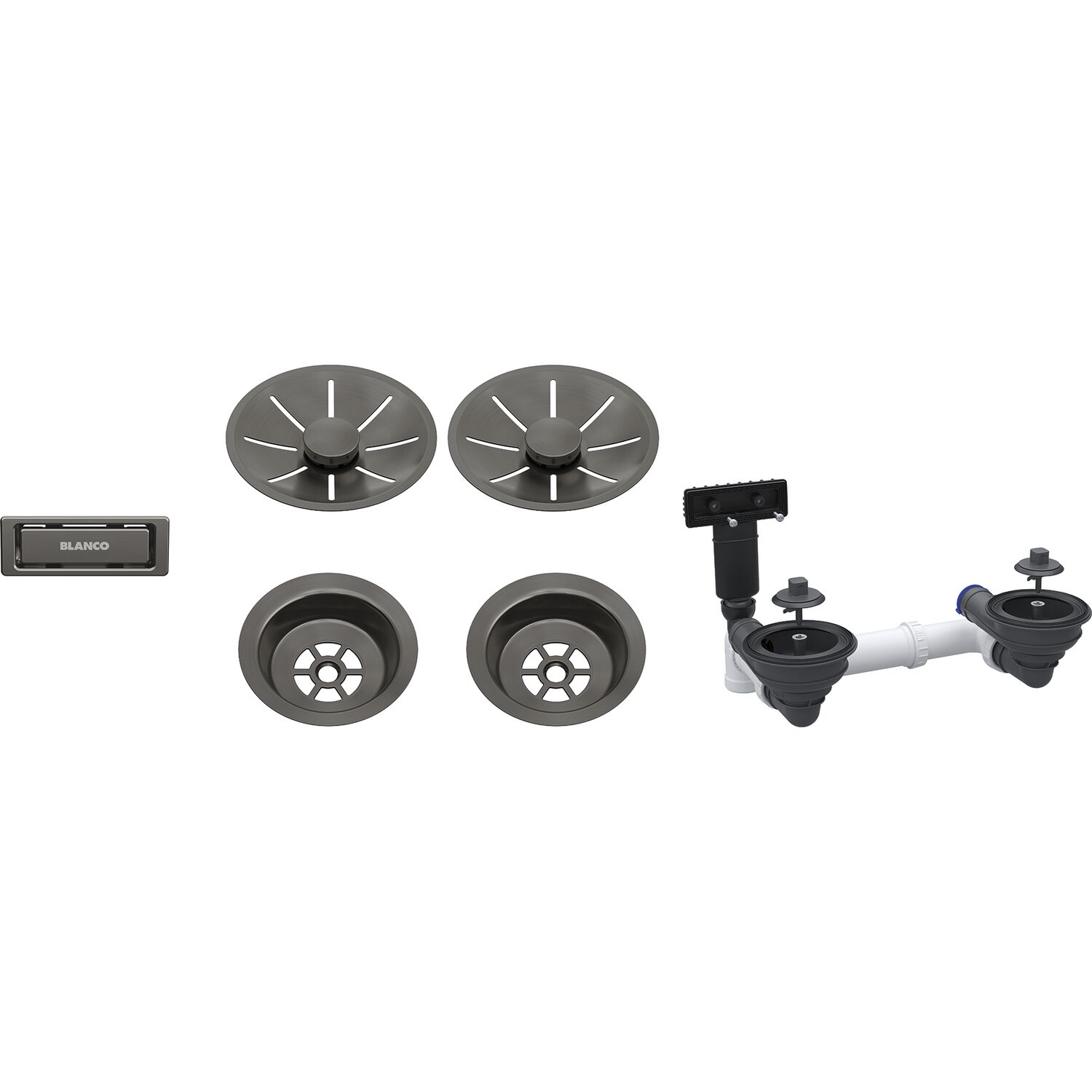 BLANCO 2x Ab-und Überlaufset InFino für Color Unit mit Zugknopf satin dark steel