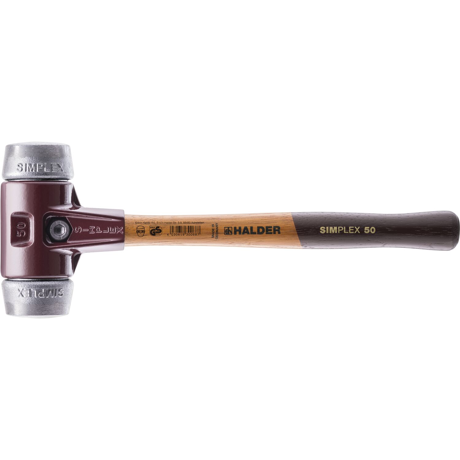 HALDER Schonhammer Temperguss Kopf ø 50 mm Alu Hickory Stiel
