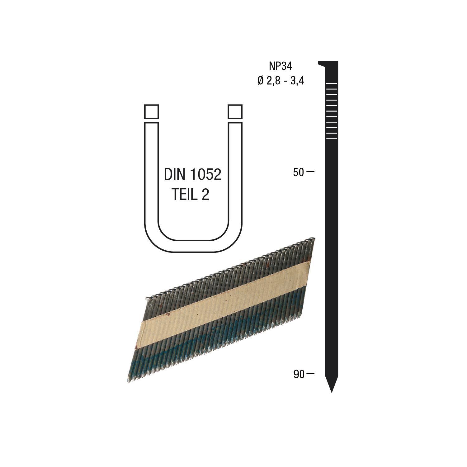 Nagelstreifen NP34 3,1 x 90 mm HBK blank geharzt Papiergebunden 34 Grad