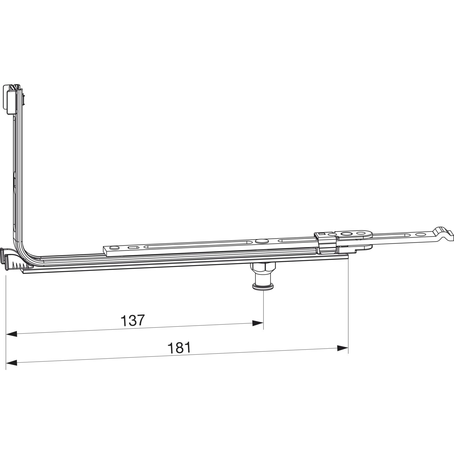 MACO MM Eckumlenkung für Schrägfenster kurz 1 iS, senkr., verlängerbar (209655)