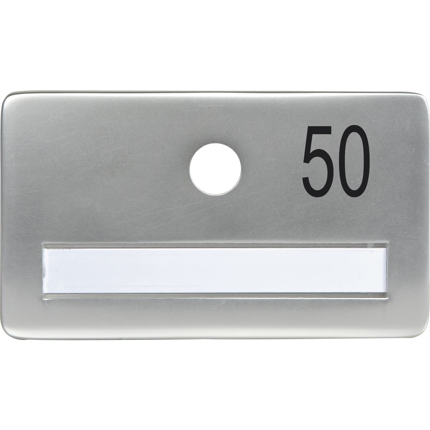 SOLIDO Namensschild ohne Spion, Bohrung ø 14, Alu silber eloxiert, Gravur Nr. 50