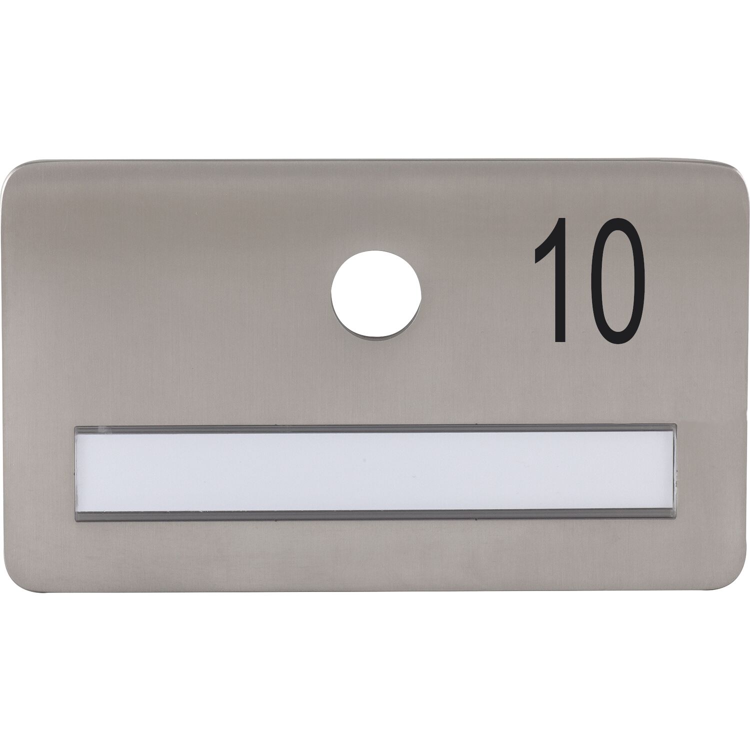 SOLIDO Namensschild ohne Spion, Bohrung ø 14, Edelstahl satiniert, Gravur Nr. 10