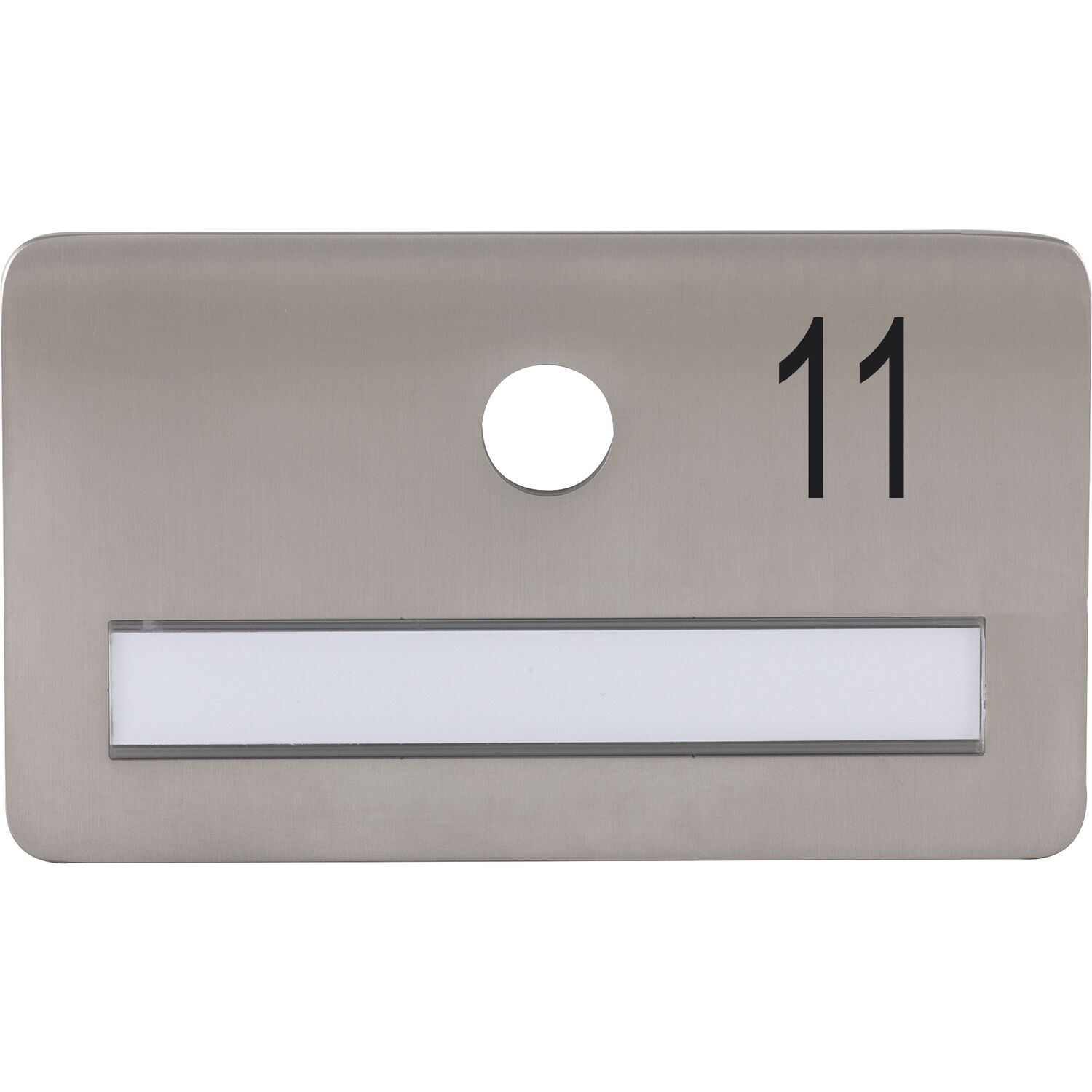 SOLIDO Namensschild ohne Spion, Bohrung ø 14, Edelstahl satiniert, Gravur Nr. 11