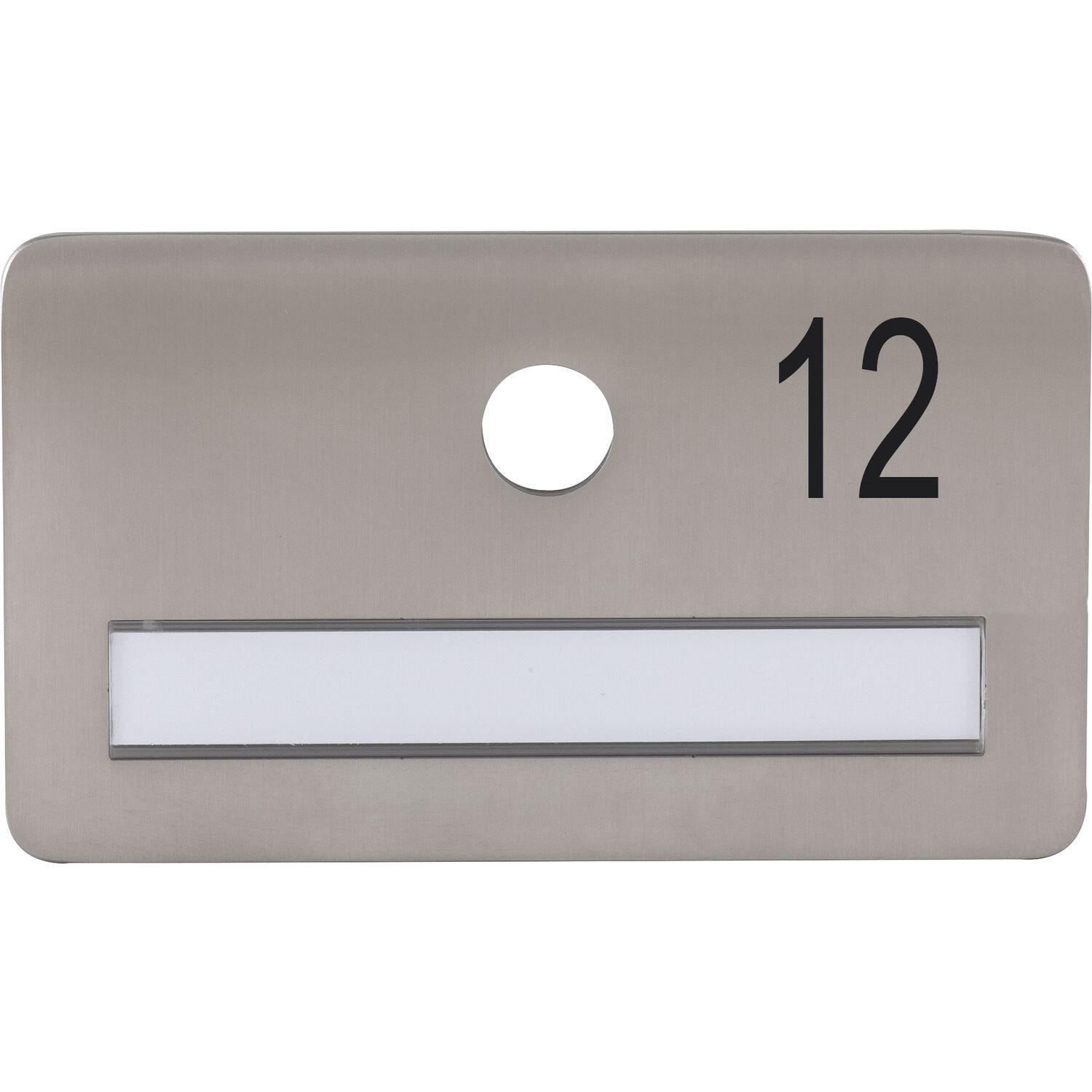 SOLIDO Namensschild ohne Spion, Bohrung ø 14, Edelstahl satiniert, Gravur Nr. 12