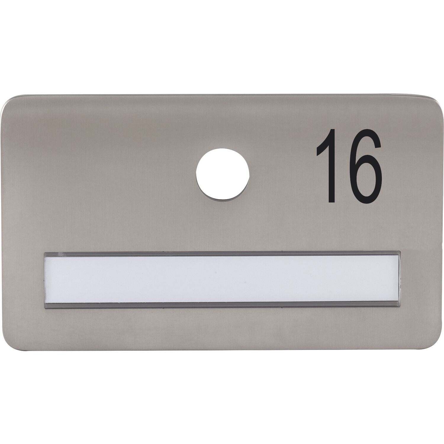SOLIDO Namensschild ohne Spion, Bohrung ø 14, Edelstahl satiniert, Gravur Nr. 16