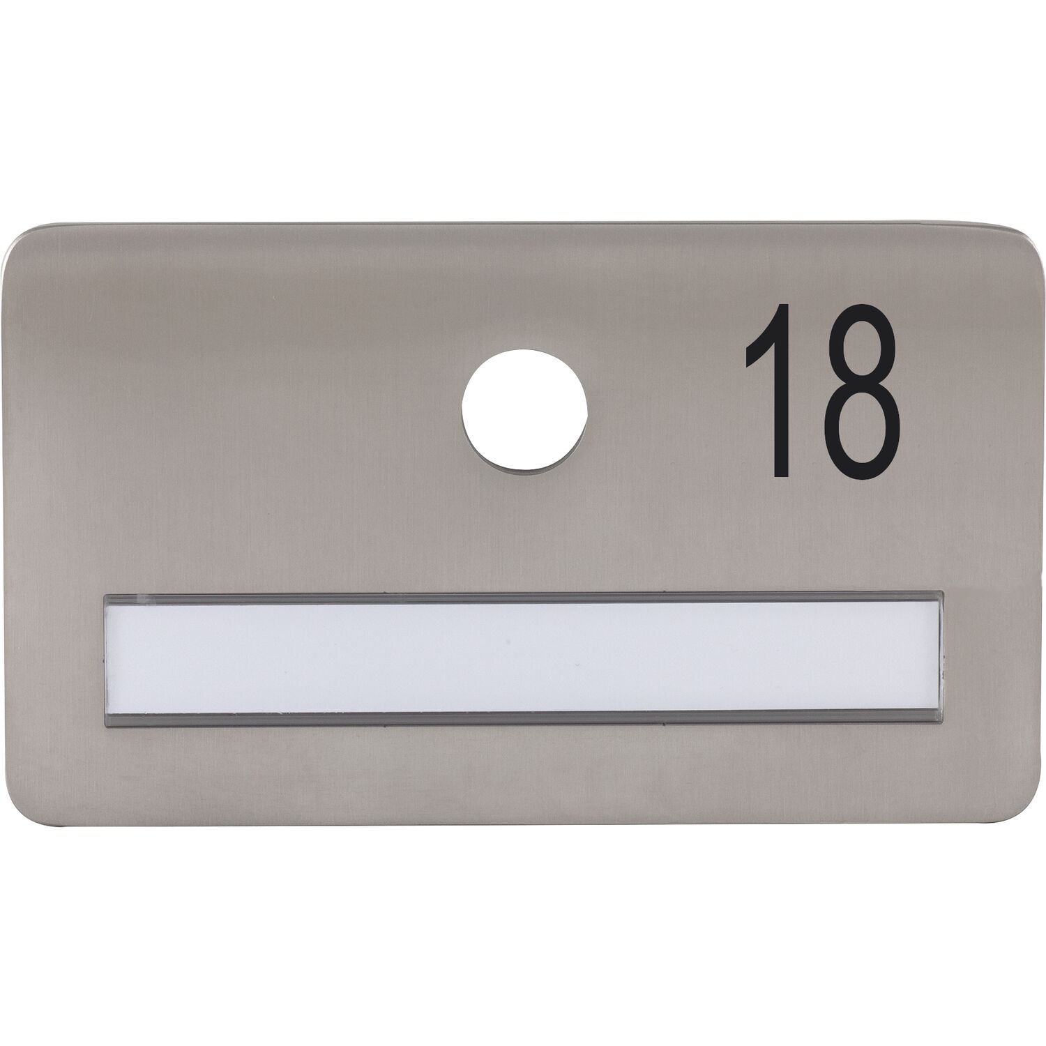 SOLIDO Namensschild ohne Spion, Bohrung ø 14, Edelstahl satiniert, Gravur Nr. 18