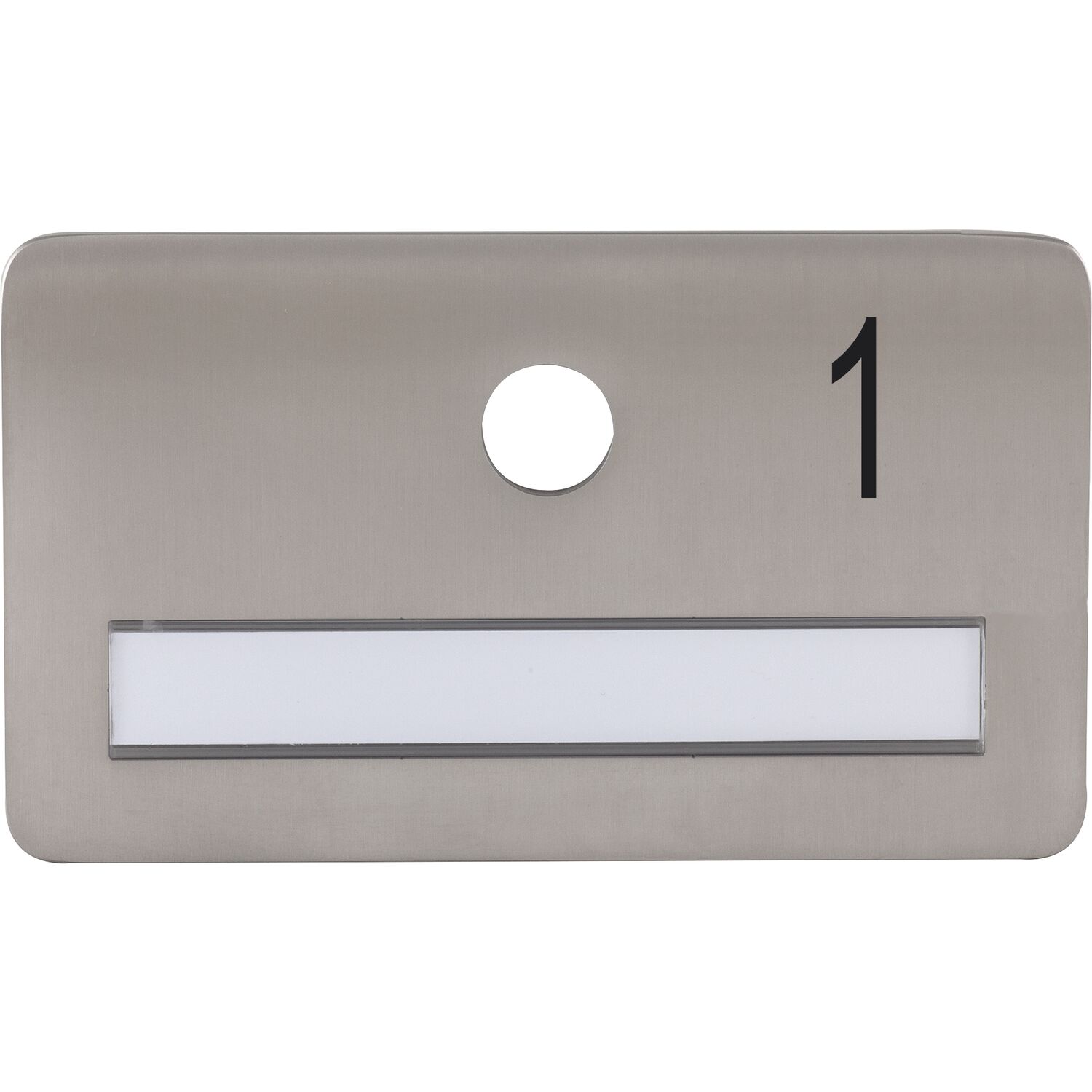 SOLIDO Namensschild ohne Spion, Bohrung ø 14, Edelstahl satiniert, Gravur Nr. 1