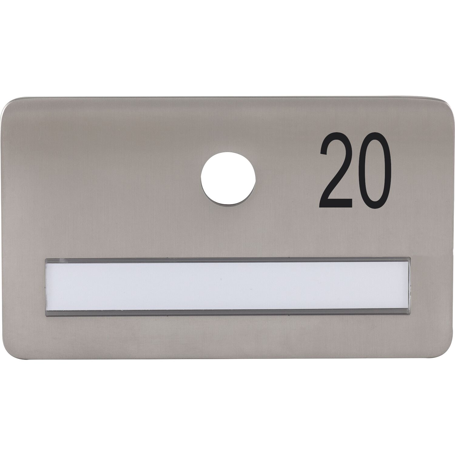 SOLIDO Namensschild ohne Spion, Bohrung ø 14, Edelstahl satiniert, Gravur Nr. 20