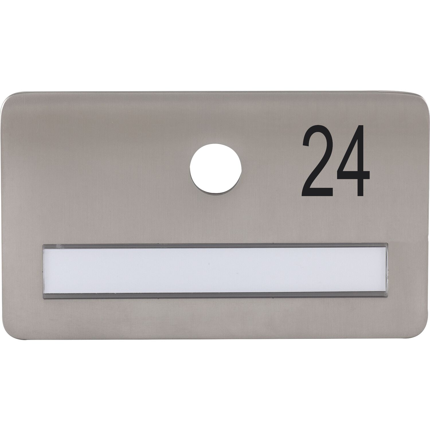 SOLIDO Namensschild ohne Spion, Bohrung ø 14, Edelstahl satiniert, Gravur Nr. 24