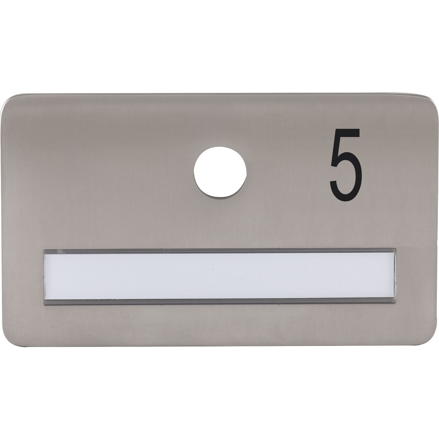 SOLIDO Namensschild ohne Spion, Bohrung ø 14, Edelstahl satiniert, Gravur Nr. 5
