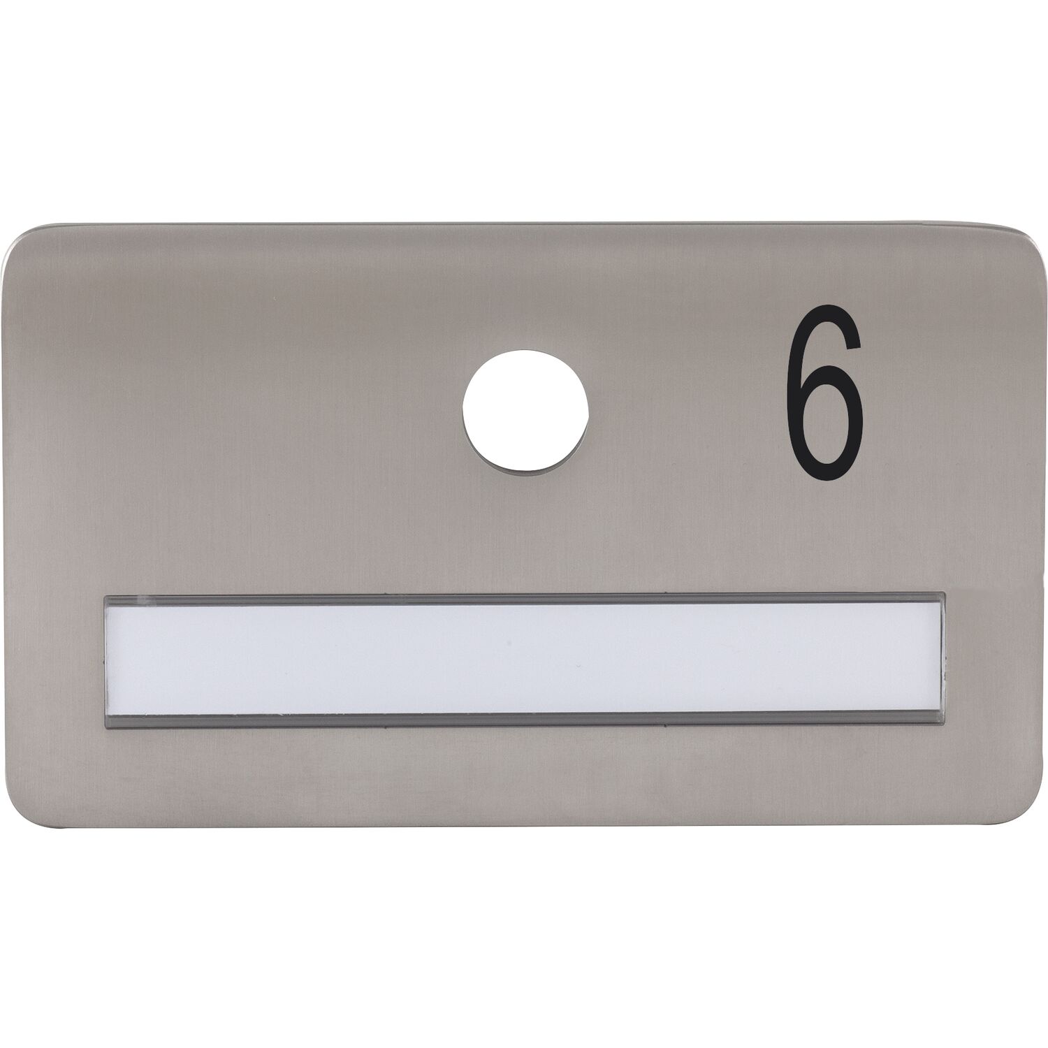SOLIDO Namensschild ohne Spion, Bohrung ø 14, Edelstahl satiniert, Gravur Nr. 6