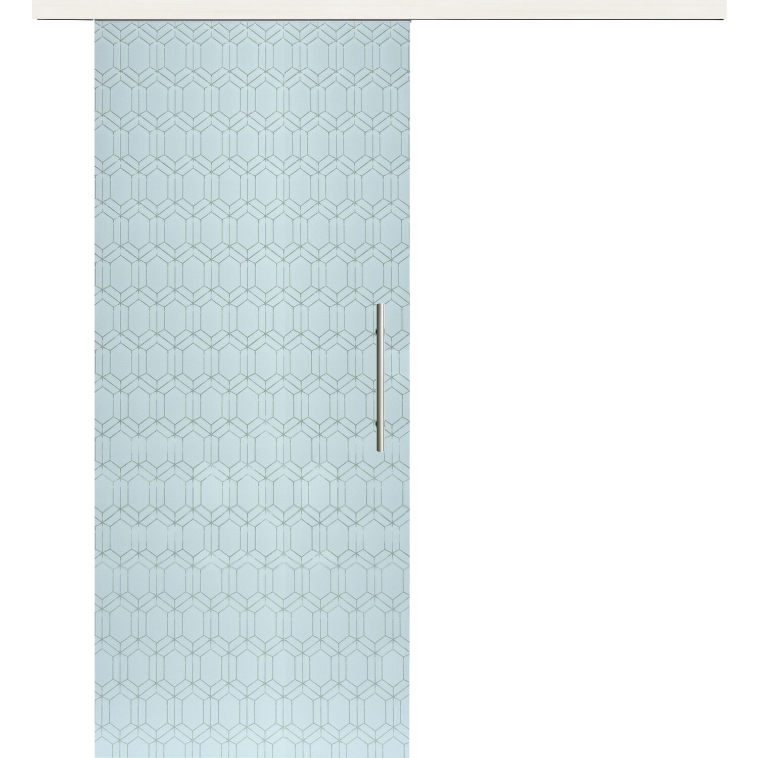 Glasschiebetür Set Smaragd weiß, Inlay Bianco, Stoßgriff silber, 720 mm