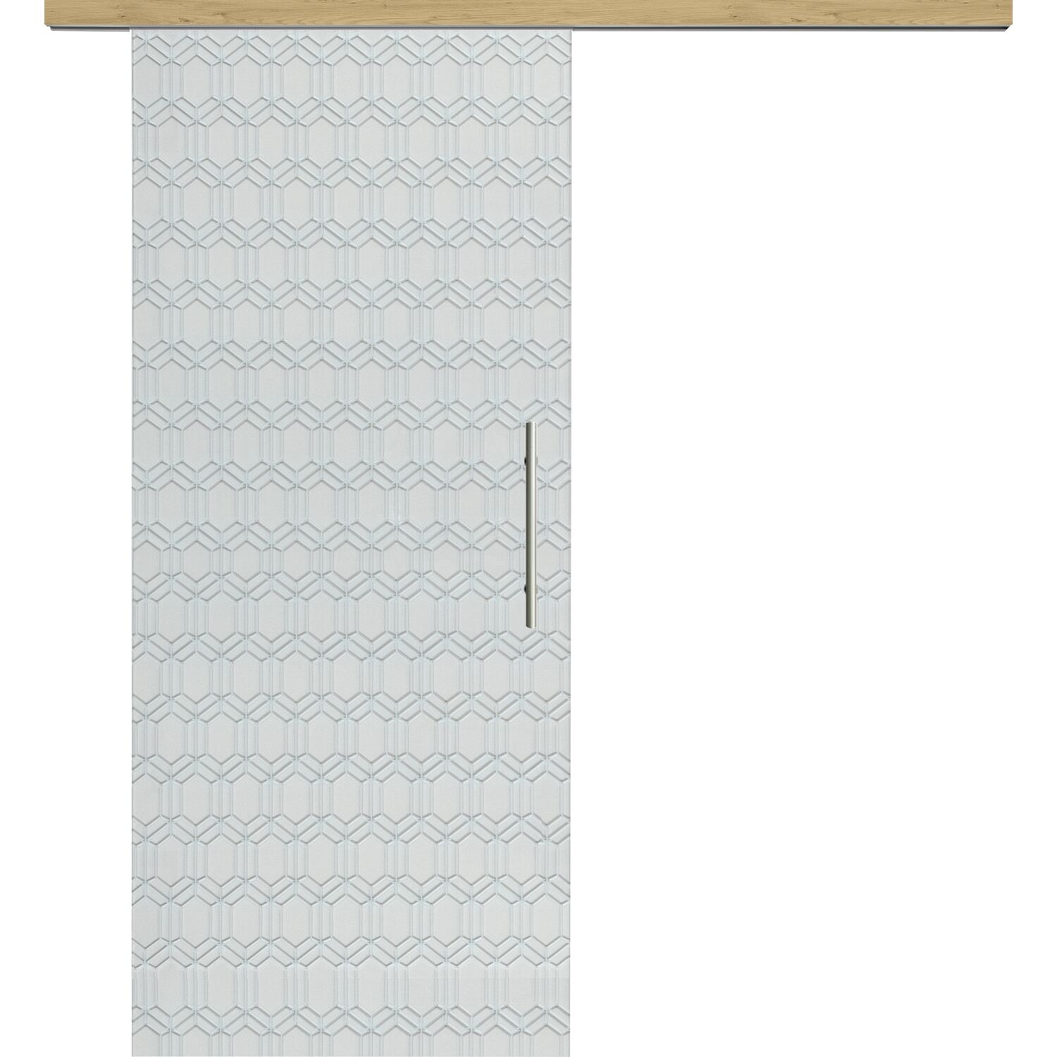 Glasschiebetür Set Diamant weiß, Inlay Eiche, Stoßgriff silber, 720 mm