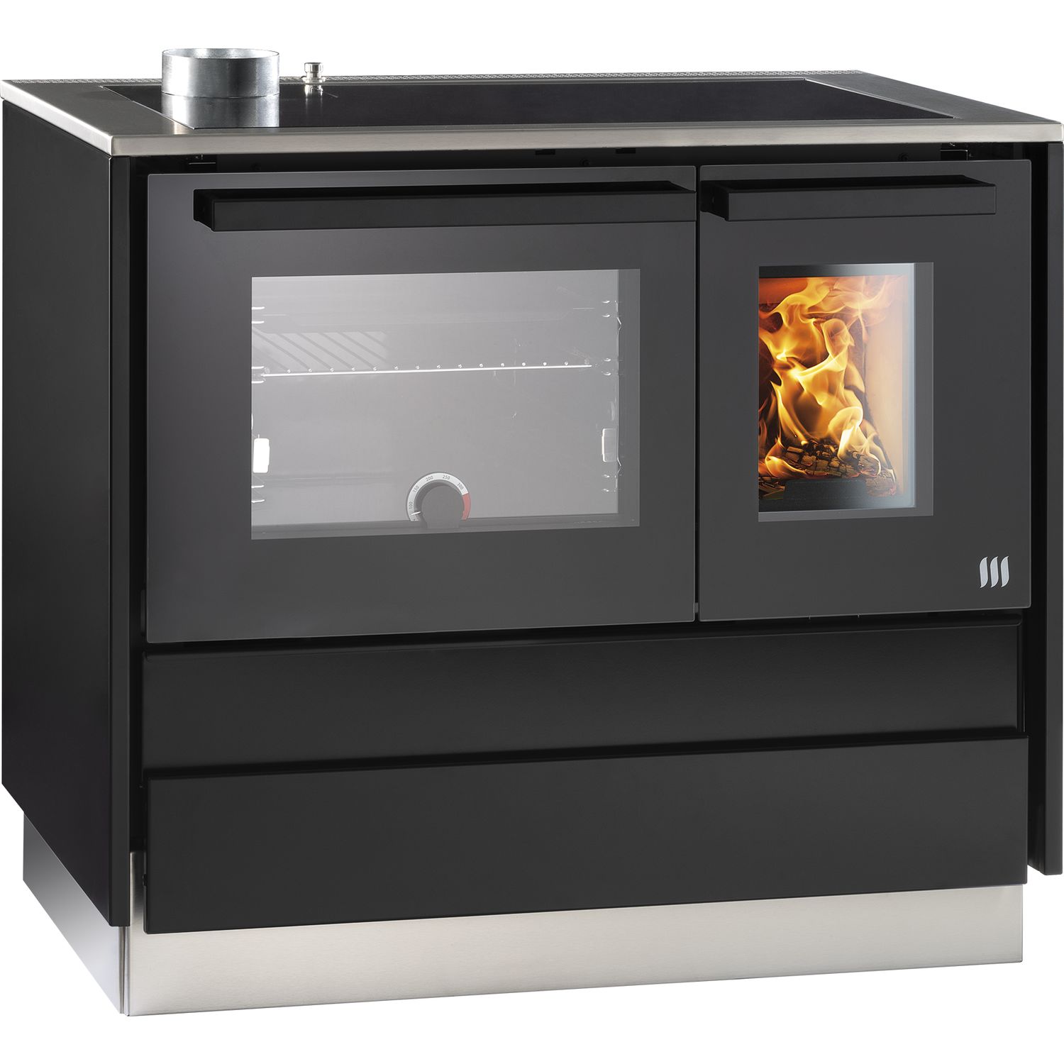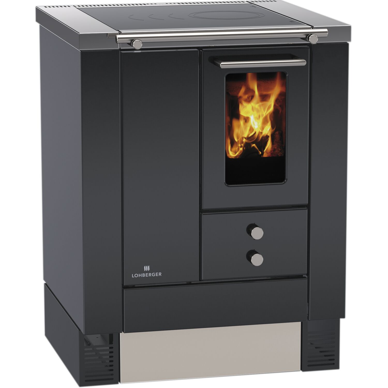 LOHBERGER Festbrennstoffherd Rega 40, Edelstahl-schwarz