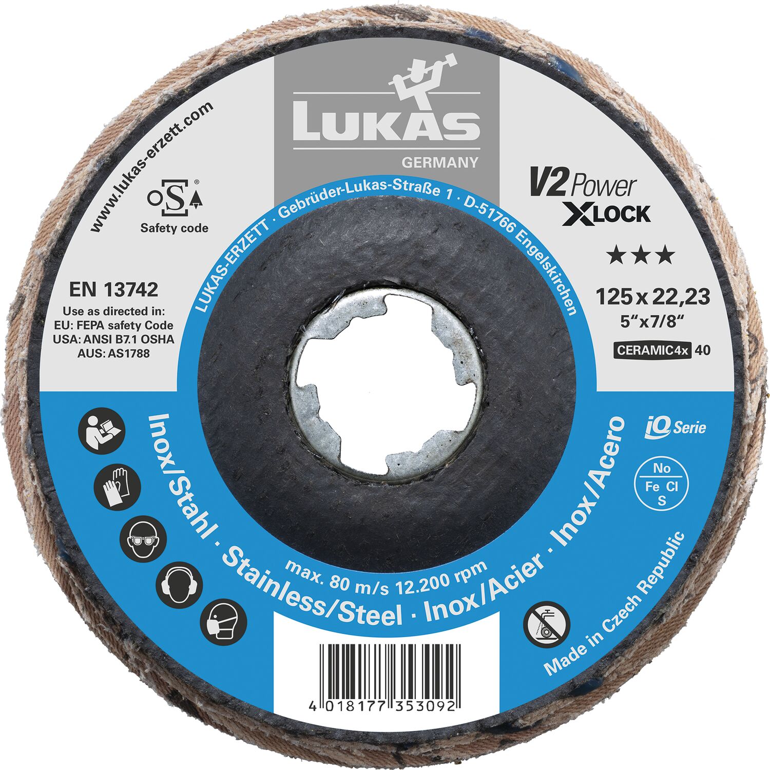 LUKAS Schleiflamellenteller V2 Power X-LOCK Ceramic4x ø 125 mm Korn 40